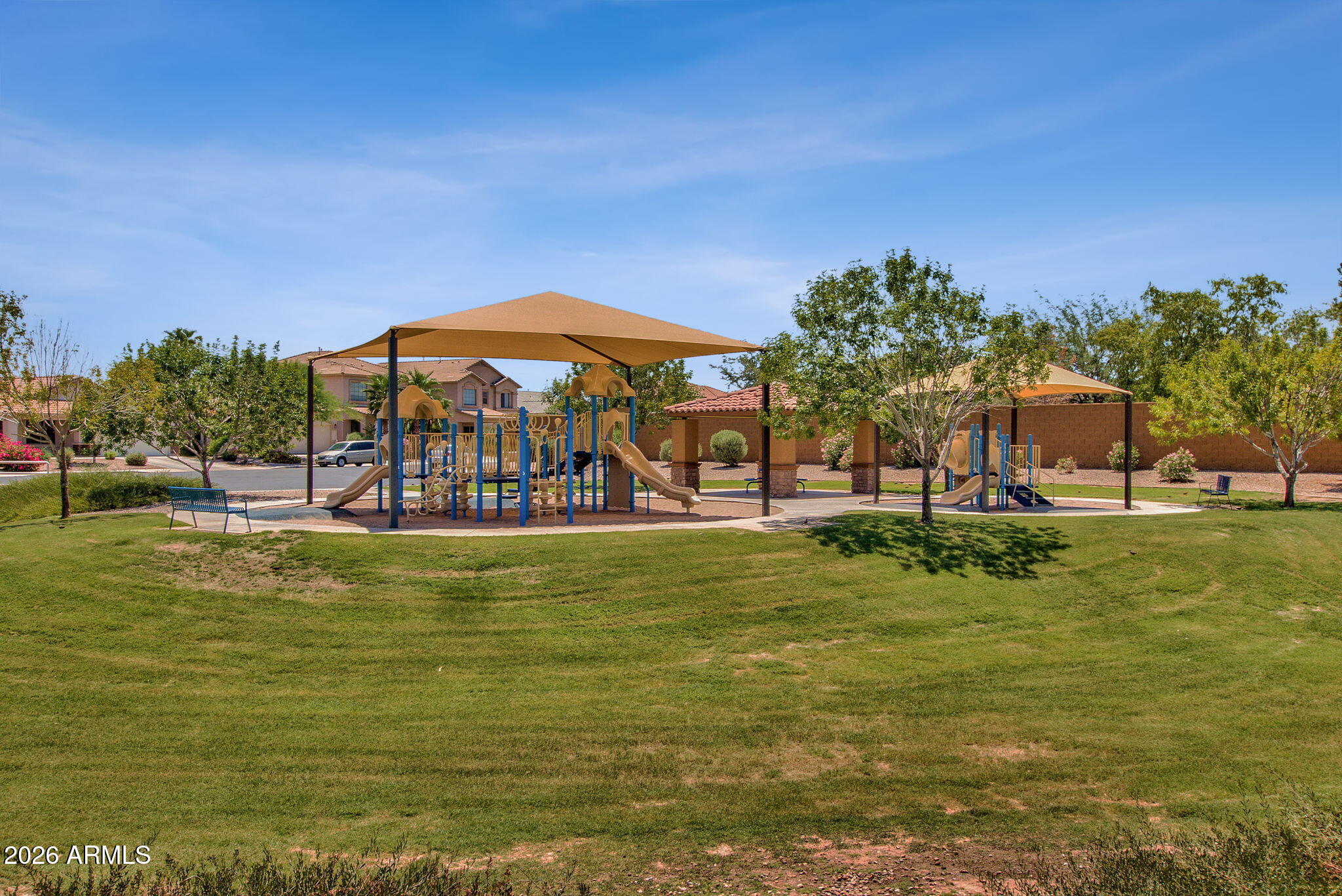 Multiple community parks with playgrounds, picnic areas, and BBQ stations