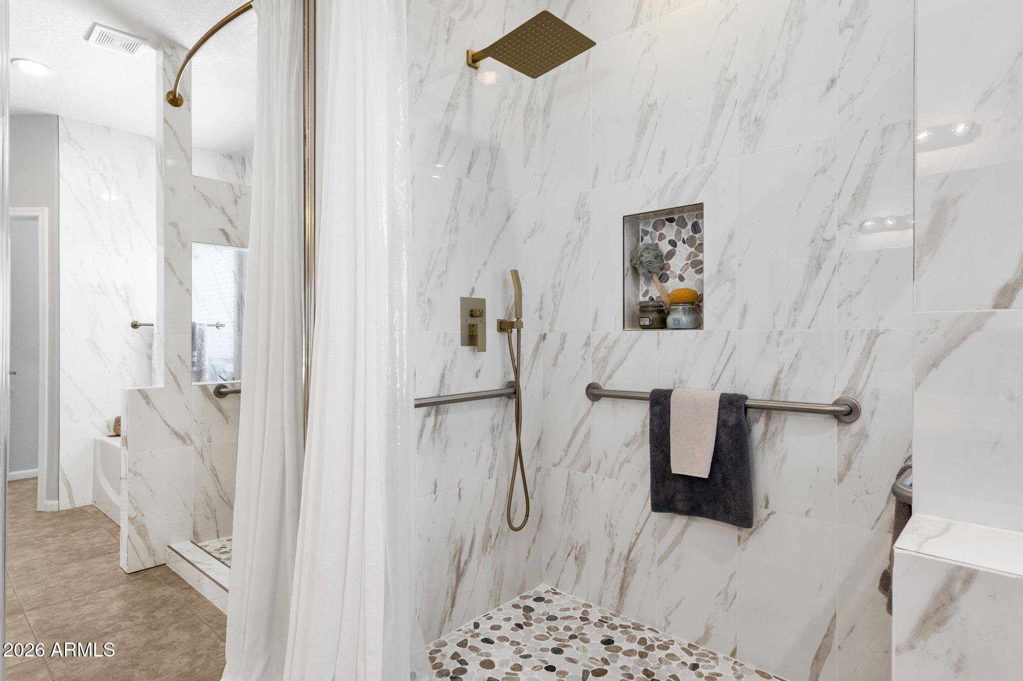 At the heart of the home, an open-concept layout connects the great room, dining area, and kitchen perfect for gatherings both large and small. The kitchen features stainless appliances, 42" cabinetry, granite counters, and a dedicated pantry. All bathrooms have been fully updated, featuring new toilets, custom walk-in showers, quartz countertops, modern sinks, lighting, and hardware. The spacious primary suite serves as a private retreat with patio access, a beautifully remodeled en-suite bath with soaking tub, and an oversized walk-in closet.